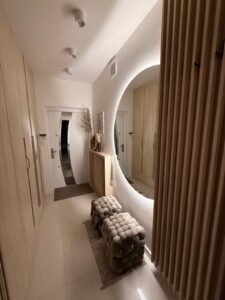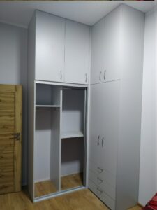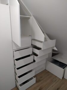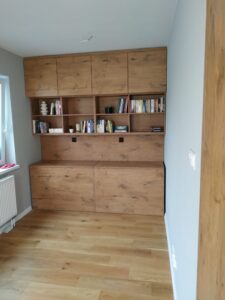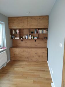 „Szanowni Państwo, Zajmujemy się tworzeniem mebli zaspokajających indywidualne potrzeby każdego klienta. Każdy mebel jest niepowtarzalny, nie tworzymy masowych szablonów. Optymalne wykorzystanie przestrzeni w pomieszczeniu to podstawowy walor mebli na wymiar. Do każdej inwestycji stosujemy dedykowany projekt . Solidna tak zwana „ręczna robota” jest naszym atutem. Wykonamy umeblowanie pomieszczenia w otaczającej go infrastrukturze, zgodnie z Państwa życzeniem, naszymi pomysłami i funkcjonalnością użytkową powierzchni.”